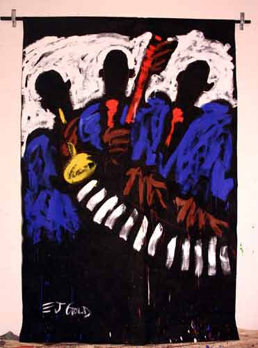 | COOL CITY ... HOT JAZZ is an exhibit of JazzArt ® by the legendary E.J. Gold, accompanied by the talents of Grace Kelly Rivera, Douglass-Truth, Yanesh, Zoe Alowan and Aviko. Paintings, works on paper and sculpture offer homage to the greatness of jazz and its performers and the cultural richness abounding from that legacy. |